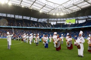 Gran representación de Asociación Tambores Solidarios en la tamborrada del descanso del partido de la Real del sábado con el ...